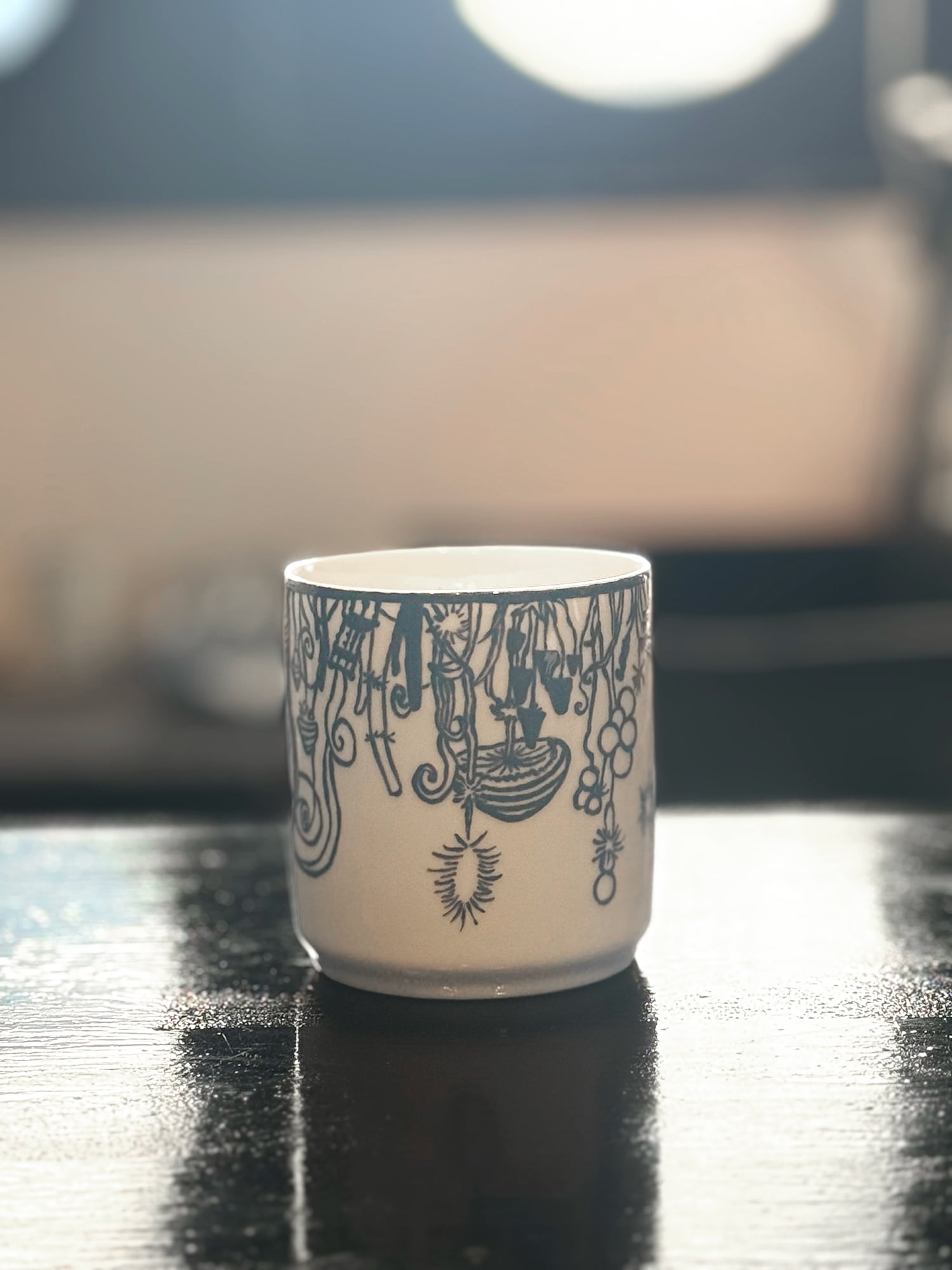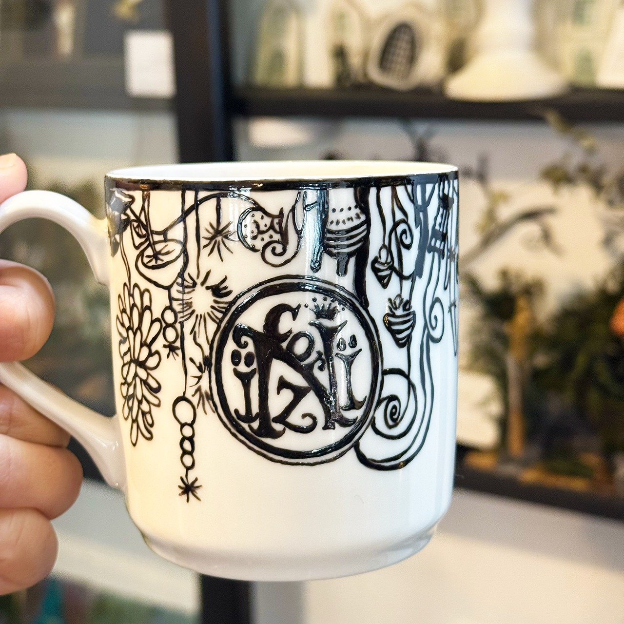 隠れ家雑貨店ニコライズにこっそり隠れて暮らしているきのこの女の子ダニエルが、キノコの生い茂る森で遊んでいる様子をひとつひとつ手描きし、焼き付けたオリジナルのマグカップです