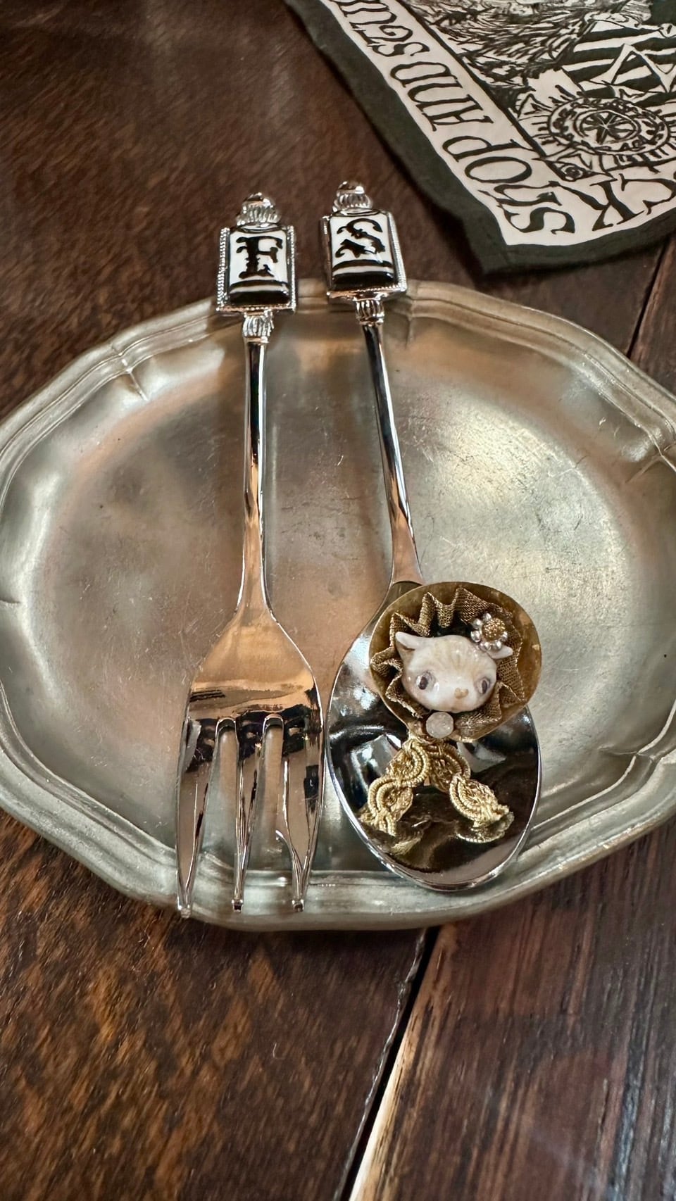真鍮でできたボンネットを被ったねこの