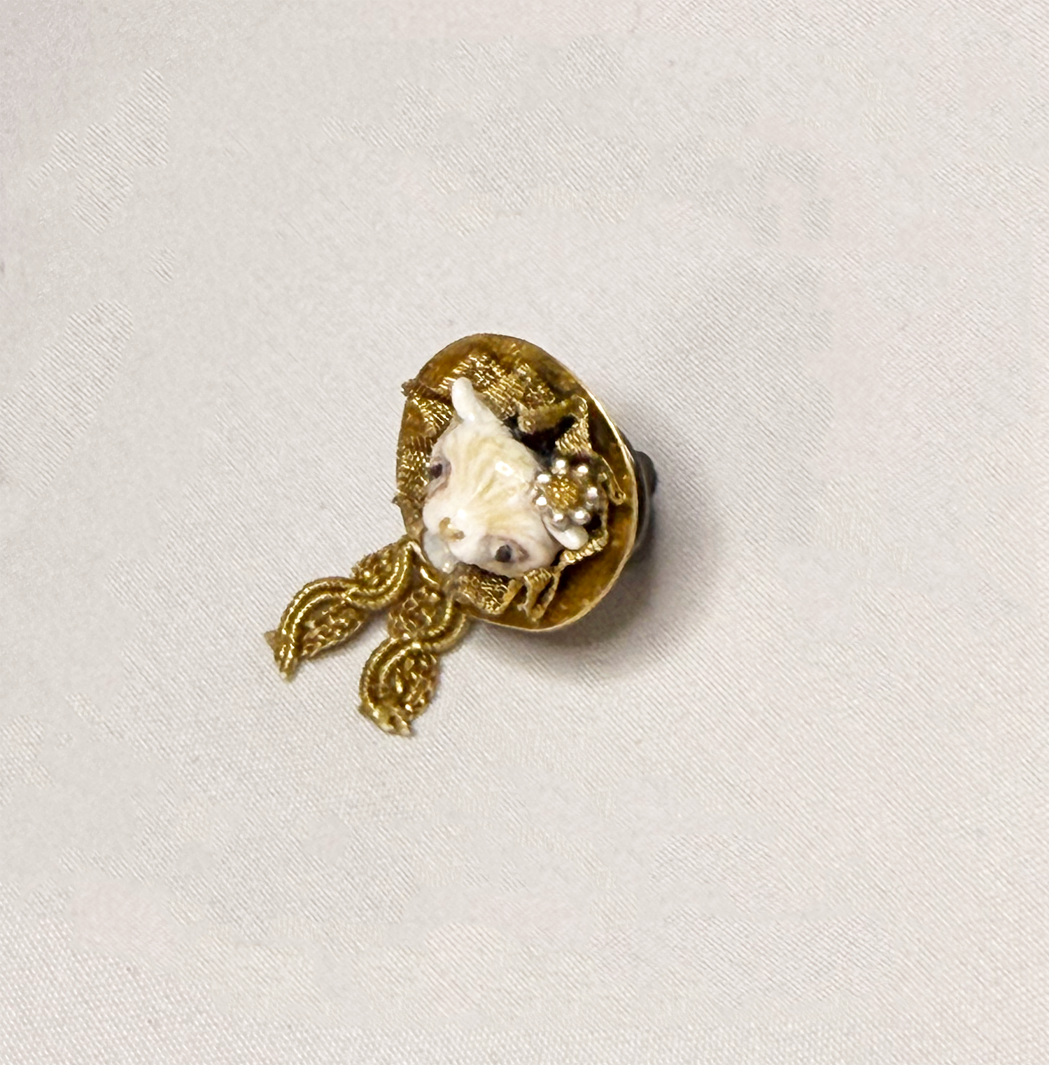真鍮ボンネット ねこピンブローチ -Bonnet Pin Brooch of Cat-