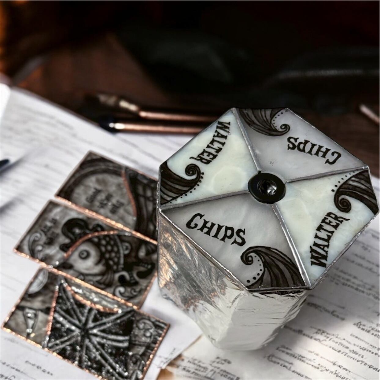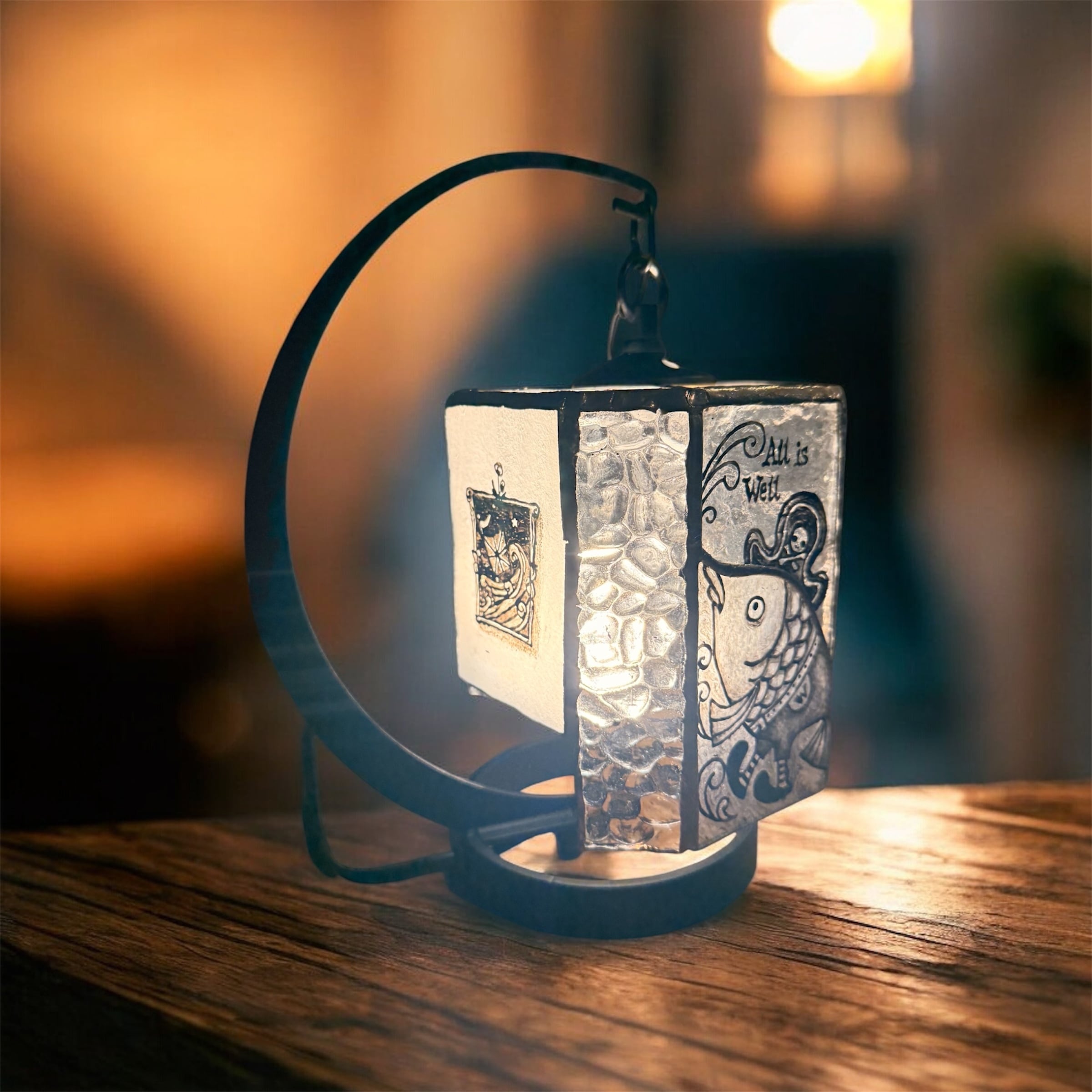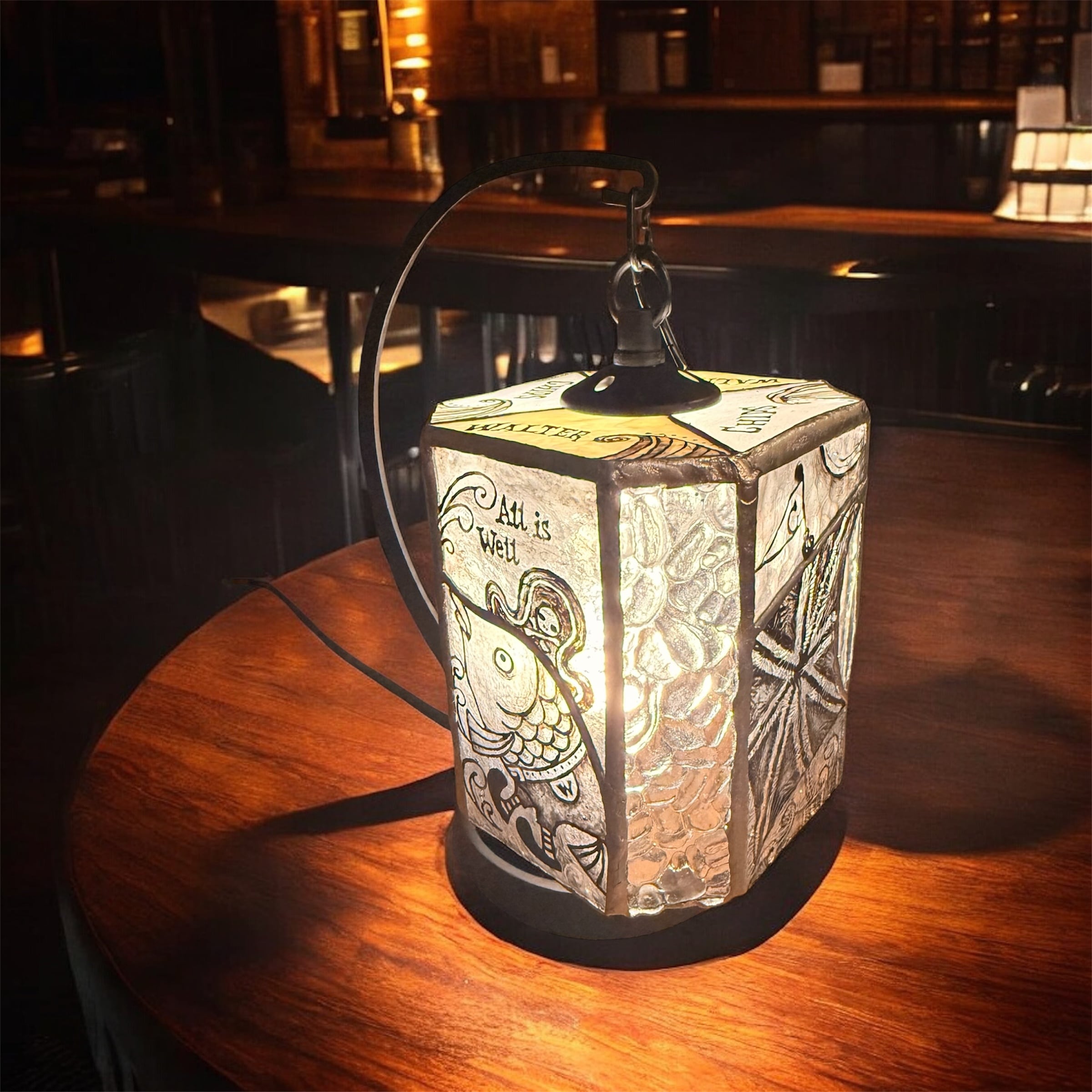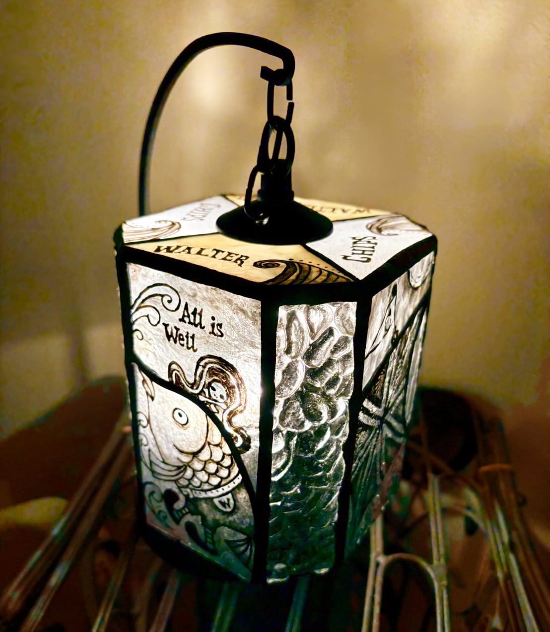[受注制作] さかなのウォーリーのステンドグラスランプ -Stained Glass Lamp of Wally-